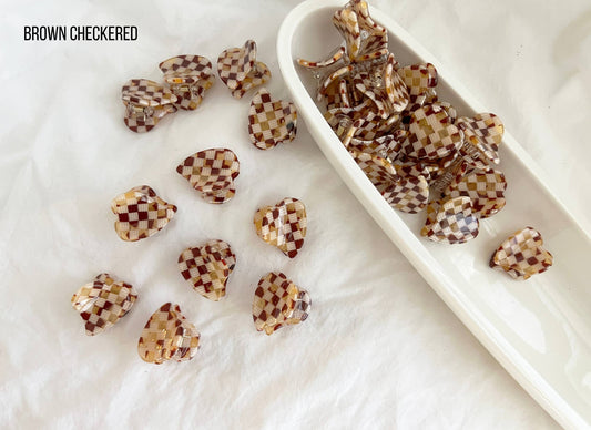 Heart Shape Acetate Hair Clip - DOLCE: ONE SIZE / BROWN CHECKERED